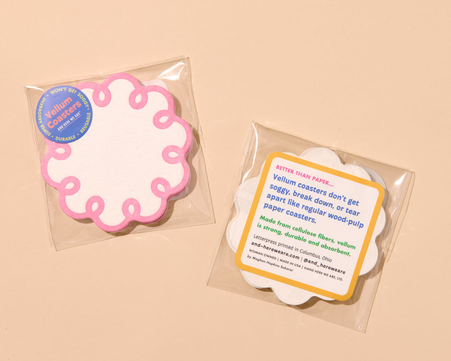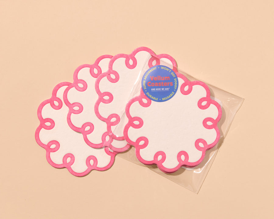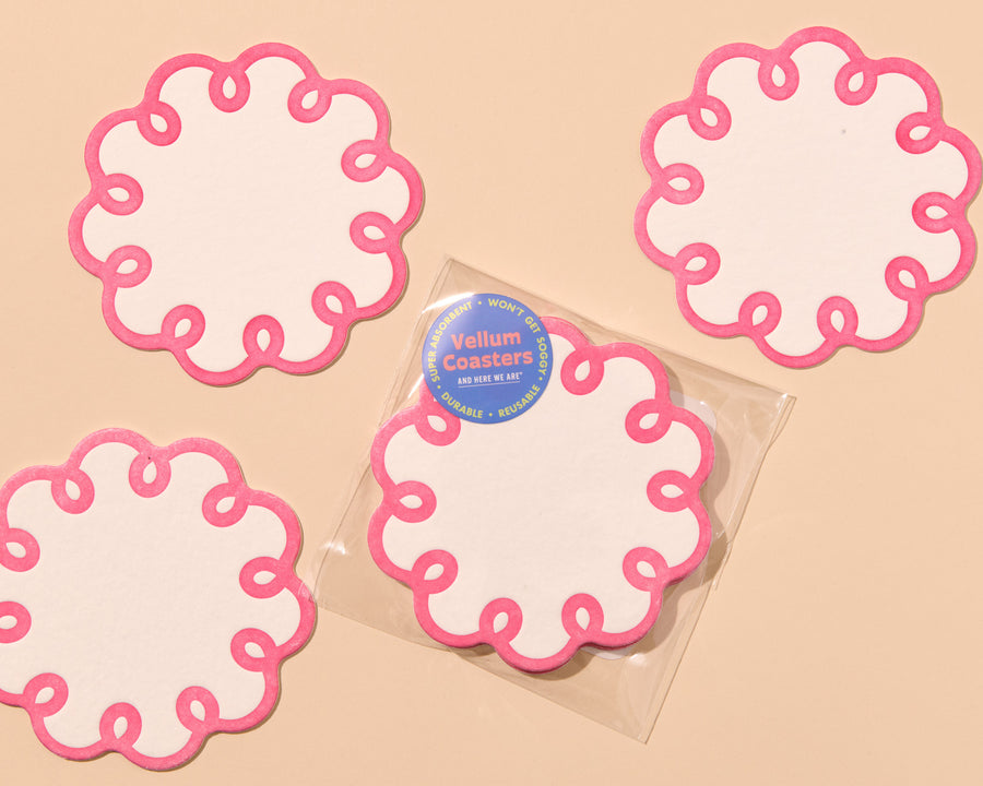 Coquette Scalloped Vellum Coasters - Pink (Set of 4) letterpress printed vellum coasters