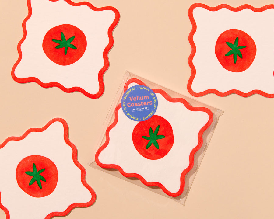 Crudité Vellum Coasters - Tomato (Set of 4) letterpress printed vellum coasters