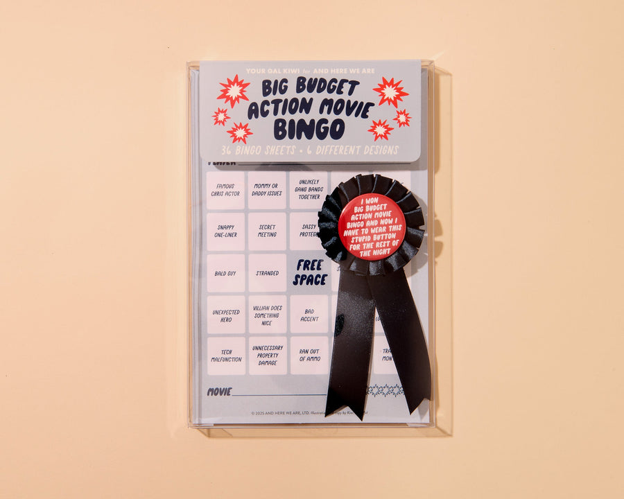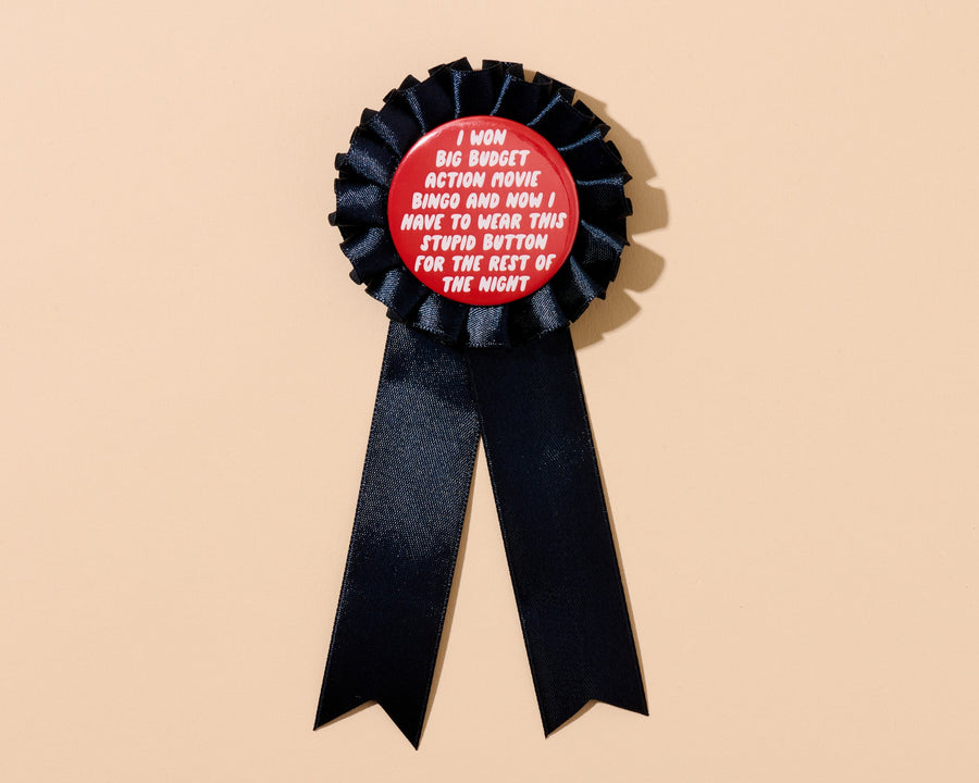 The game gets even sillier when the winner dons an award ribbon that states "I won Big Budget Action Movie Bingo and now I have to wear this stupid ribbon for the rest of the night."