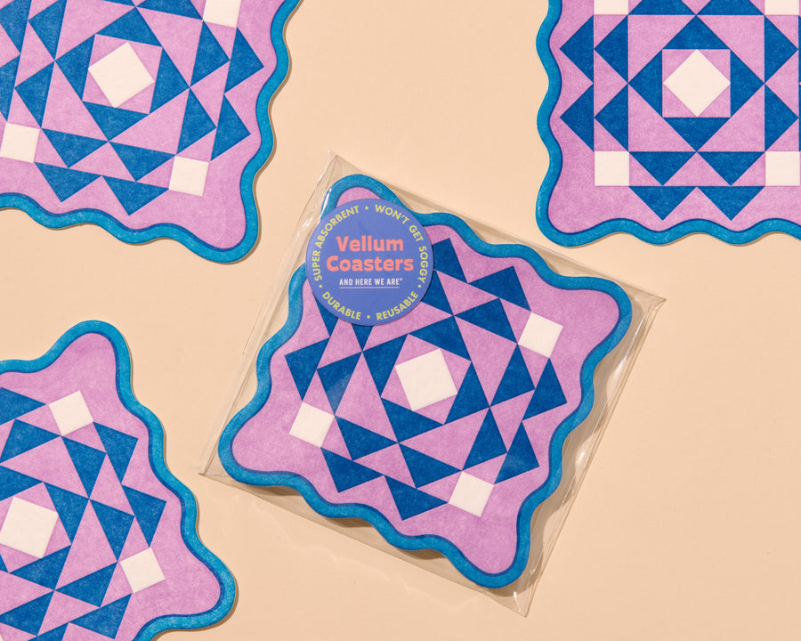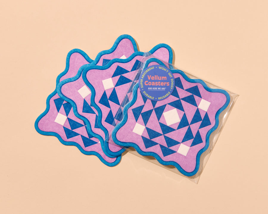 Kaleidoscope Vellum Coasters - Blue/Purple (Set of 4) letterpress printed vellum coasters